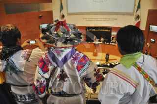 MÉXICO, D.F., 19ABRIL2012.- Visita de indígenas Wirrarikas al Senado de la República para la realización del Foro de Análisis para una propuesta legislativa: Wirikuta, el Derecho a lo Sagrado. en el que participaron los Senadores del Grupo Parlamentario del PRD, Carlos Navarrete, José Luis Máximo García Zalvidea y Héctor Bautista para escuchar las propuestas que permitirán mantener el sitio Sagrado de Wirikuta. FOTO: CUARTOSCURO.COM