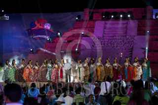 VILLAHERMOSA, TABASCO, 19ABRIL2012.- Las 17 bellas embajadoras del mismo numero de municipios recibieron en manos del gobernador Andrés Granier Melo y su esposa Teresa Calles de Granier las bandas que las acredita oficialmente representantes al certamen de belleza Flor de Oro. FOTO: MARCO POLO GUZMÁN HERNÁNDEZ /CUARTOSCURO.COM