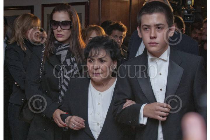 MÉXICO, D.F., 20ABRIL2012.- La actríz, Ninel Conde, acompañó a la actríz y productora, Carmen Salinas al cepelio por la perdida de su amigo y mano derecha, Juan Pascal "El Chato" Cejudo, víctima de una cirrosis hepática, el quien fuera amigo y confidente de Carmen Salinas durante más de 40 años había sido internado dias atrás en el Instituto Nacional de Nutrición y la productora de obras como "Aventurera" entre otras, no separó de él. Sus restos son velados en una agencia funeraría en la calle de Sullivan. FOTO: FRANCISCO RODRÍGUEZ /CUARTOSCURO.COM