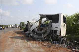 ÁLAMO, VERACRUZ, 20ABRIL2012.- Por la madrugada un autobús de pasajeros fue impactado por la caja de un tráiler sobre la carretera Álamo-El Potrero, con un saldo preliminar de 43 muertos y 27 lesionados. FOTO: ESPECIAL /CUARTOSCURO.COM