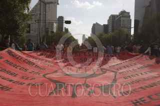 MÉXICO, D.F., 20ABRIL2012.- Alumnos de diferentes Normales Rurales, pertenecientes a la Federacion de Estudiantes Campesinos Socialistas de México, (FECSM), se manifestaron en avenida Reforma para protestar por las resoluciones del caso de sus compañeros asesinados en una manifestación en Chilpancingo Guerrero. FOTO: JUAN PABLO ZAMORA /CUARTOSCURO.COM