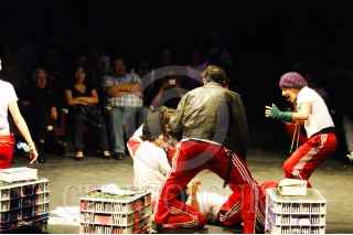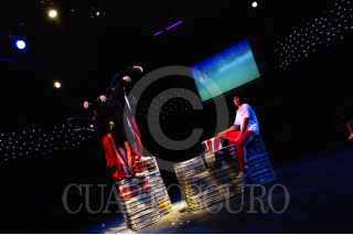 MÉXICO, D.F., 21ABRIL2012.- Se presentó la obra teatral "Big Bang Bully. El musical" la cual refleja los problemas de un adolescente; víctima del brabucon de su escuela, una novia que no lo termina de aceptar y el abandono por parte de su madre. Javier, quien es el personaje principal, después de sufrir los peores abusos se enfrenta de manera astuta con su nemesis y logra superar su crisis juvenil. Esta puesta escena se presenta los fines de semana a las 11:30 a.m., en el Polyforum Siqueiros. FOTO: NIMROD CRUCES /CUARTOSCURO.COM
