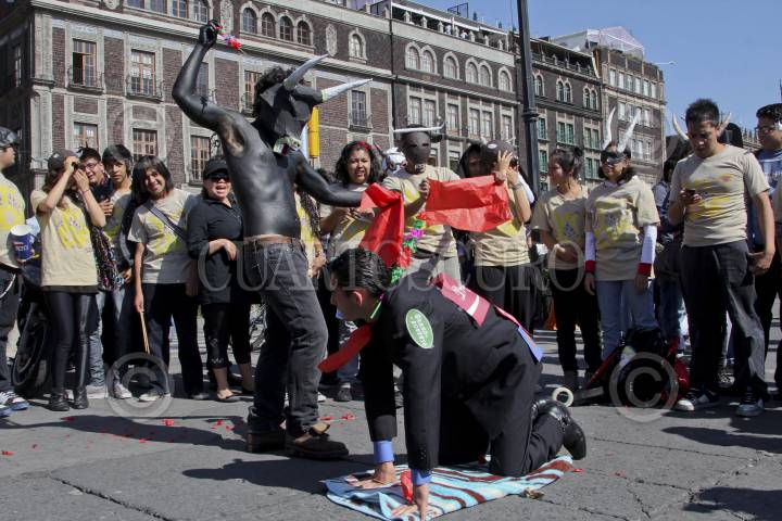 MÉXICO, D.F., 22ABRIL2012.- Cientos de personas se manifestaron contra las corridas en la plaza de toros de la ciudad de México, exigen a los diputados de la asamblea legislativa sesiones en su contra. FOTO: ENRIQUE ORDÓÑEZ /CUARTOSCURO.COM