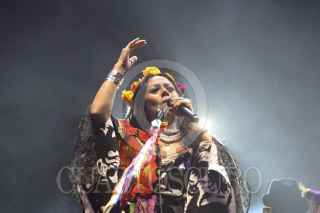 PUEBLA, PUEBLA, 22ABRIL2012.- La oaxaqueña Lila Downs recibió ovación del público poblano en cada una de sus interpretaciones durante su presentación en el teatro de la feria de Puebla 2012. FOTO: HILDA RIOS /CUARTOSCURO.COM