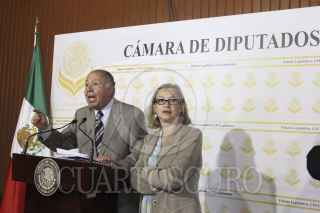 MÉXICO, D.F., 24ABRIL2012.- Laura Itzel Castillo, diputada del PT acompañada de Enrique Bonilla Rodríguez, fundador del frente nacional contra Wal-Mart, ofrecieron una conferencia de prensa en la Cámara de Diputados, donde dieron detalles sobre las violaciones laborales y fiscales que realiza la empresa Wal-Mart en México. FOTO: SAÚL LÓPEZ /CUARTOSCURO.COM