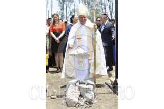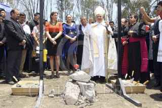 PUEBLA, PUEBLA, 24ABRIL2012.- El arzobispo de Puebla Víctor Sánchez Espinosa, durante la colocación de la primera piedra para la construcción del santuario Guadalupano en el seminario palafoxiano de la ciudad. FOTO: HILDA RÍOS /CUARTOSCURO.COM