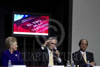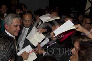 MÉXICO, D.F., 24ABRIL2012.- Miguel Ángel Mancera, candidato de las izquierdas pora el Gobiernos del D.F. acompañado de Alfredo Delgadillo Aguirre Presidente del Consejo Académico de IDEPAC , Olga Islas de Gonzáles Mariscal Investigadora de la UNAM, Ricardo Franco Guzmán Profesor de la UNAM y Jesús Zamora Pierce Abogado Independiente, realizo la presentación de su libro “El tipo de la Tentativa Teoría y Practica” en el Centro Cultural Indianilla. A su salida fue acompañado del Senador del PRD Carlos Navarrete. FOTO: GUILLERMO PEREA /CUARTOSCURO.COM