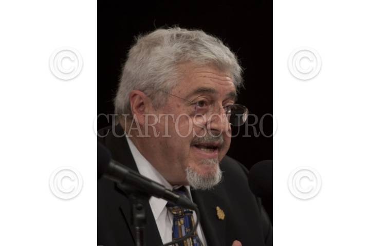 MÉXICO, D.F., 24ABRIL2012.- El escritor, Felipe Garrido, saluda a su nieta, Valentina Santos Garrido que es cargada por su madre, Elisa Garrido. Momentos antes la nieta al grito de "Viva mi abuelito" celebró la entrega del Premio Xavier Villaurrutia al escritor originario de Guadalajara, Jalisco por su ibra "Conjuro", el laureado tambien recibió un incentivo económico de 200 mil pesos. FOTO: FRANCISCO RODRÍGUEZ /CUARTOSCURO.COM