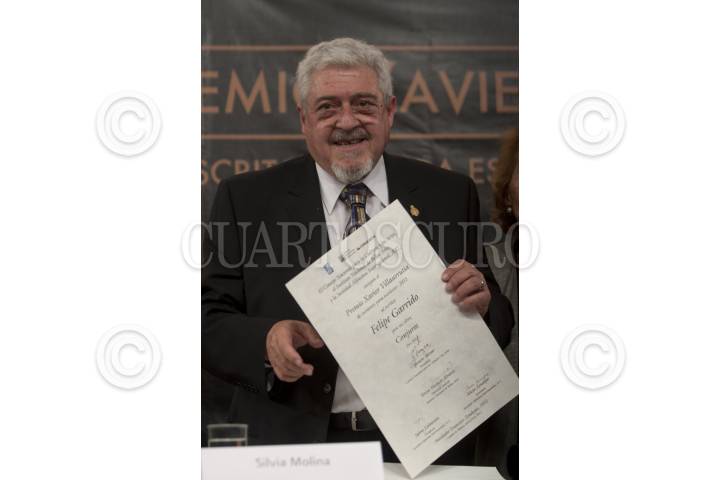 MÉXICO, D.F., 24ABRIL2012.- El escritor, Felipe Garrido, saluda a su nieta, Valentina Santos Garrido que es cargada por su madre, Elisa Garrido. Momentos antes la nieta al grito de "Viva mi abuelito" celebró la entrega del Premio Xavier Villaurrutia al escritor originario de Guadalajara, Jalisco por su ibra "Conjuro", el laureado tambien recibió un incentivo económico de 200 mil pesos. FOTO: FRANCISCO RODRÍGUEZ /CUARTOSCURO.COM