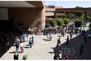 MÉXICO, D.F., 25ABRIL2012.- Gabriel Quadri, candidato a la presidencia de la república por el partido Nueva Alianza, acompañado por José Morales Orozco, rector de la Universidad Iberoamericana, a su salida de la casa de estudios. FOTO: CARLOS VARGAS /CUARTOSCURO.COM