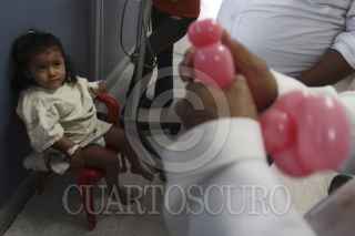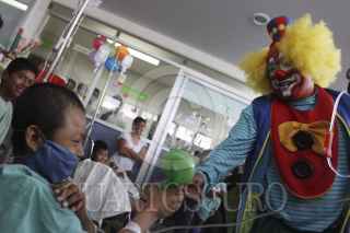 OAXACA, OAXACA, 25ABRIL2012.-Un grupo de payasos encabezados por Tito Tito Capotito llevaron este miércoles un poco de alegría a los niños del pabellón de oncología pediátrica del Hospital General Dr. Aurelio Valdivieso, esto como parte del día del niño. Los niños rieron por más de dos horas con las ocurrencias del grupo de 5 payasos quienes realizaron globoflexia, chistes y sketches, además de brindar diversos obsequios. FOTO: ARTURO PÉREZ ALFONSO /CUARTOSCURO.COM