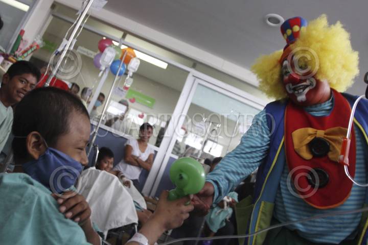 OAXACA, OAXACA, 25ABRIL2012.-Un grupo de payasos encabezados por Tito Tito Capotito llevaron este miércoles un poco de alegría a los niños del pabellón de oncología pediátrica del Hospital General Dr. Aurelio Valdivieso, esto como parte del día del niño. Los niños rieron por más de dos horas con las ocurrencias del grupo de 5 payasos quienes realizaron globoflexia, chistes y sketches, además de brindar diversos obsequios. FOTO: ARTURO PÉREZ ALFONSO /CUARTOSCURO.COM