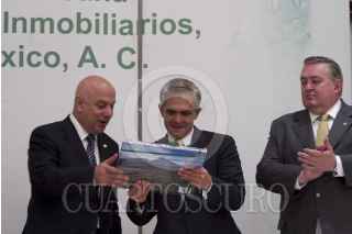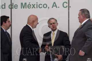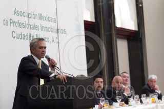 MÉXICO, D.F., 26ABRIL2012.- Miguel Ángel Mancera, candidato de las izquierdas para jefe de Gobierno del Distrito Federal se reunió con integrantes de la Asociación Mexicana de Profesionales Inmobiliarios, en un hotel de la zona de Polanco. El candidato es acompañado de Alejandro Kuri Pheres, Presidente de AMPI. FOTO: GUILLERMO PEREA /CUARTOSCURO.COM