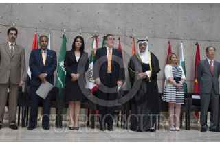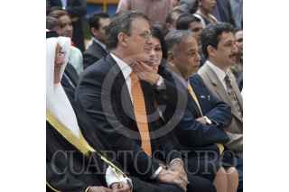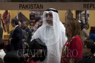 MÉXICO, D.F., 26ABRIL2012.- Rosalinda Bueso, esposa del Jefe de Gobierno del Distrito Federal; Marcelo Ebrard Casaubon, haciéndole mimos y caricias al jefe de gobierno capitalino durante la inauguración del Primer Festival Cultural Asiático en México realizado en el Centro Cultural del México Contemporáneo. FOTO: NIMROD CRUCES /CUARTOSCURO.COM