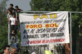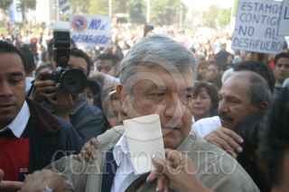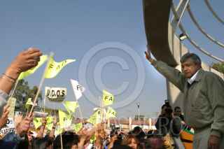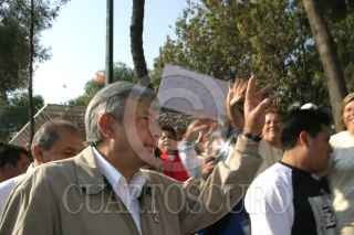 MEXICO, D.F. 20FEBRERO2005.- Vecinos de la delegación Iztacalco despiden a Andrés Manuel López Obradror, jefe de gobierno de la ciudad de México, al termino de la inauguración de un centro recrativo en dicha demarcación. FOTO: Nelly Salas/CUARTOSCURO.COM