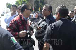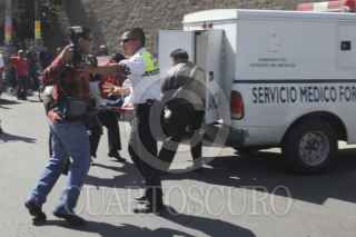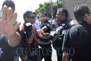 XALOSTOC, ESTADO DE MÉXICO 26ABRILO2012.- Elementos policiacos agreden a reporteros gráficos de distintos medios de comunicación, bajo la orden del Ministerio Publico de Xalostoc en el Municipio de Ecatepec. Bajo amenazas de muerte y golpes trataron de impedir la labor periodística en un accidente, en donde un joven pierde la vida arrollado por un camión. Los hechos en la colonia Cardonal de este municipio. Así mismo, indicaron que fabricarán argumentos para la detención de los reporteros si no se retiraban del lugar. FOTO: LUIS CARBAYO /CUARTOSCURO.COM