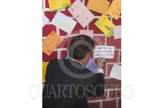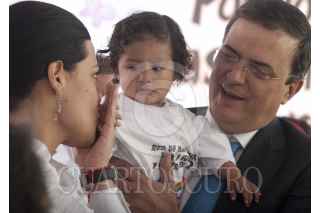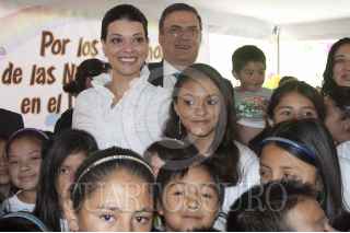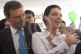 MÉXICO, D.F., 27ABRIL2012.- Marcelo Ebrard Jefe de Gobierno Capitalino, asistió esta mañana a la casa Frissac en el centro de Tlalpan a un evento organizado por la "Red de niñas y niños por la igualdad contra el maltrato" para celebrar el Día del Niño, durante el evento lo acompaño su esposa: Rosalinda Bueso quien cargo y apapacho diferentes bebes. FOTO:NIMROD CRUCES