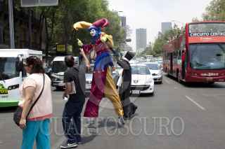 MÉXICO, D.F., 28ARIL2012.- Zanqueros alegraron a los capitalinos que andaban por la avenida Juárez en el Centro Histórico. FOTO: MOISÉS PABLO /CUARTOSCURO.COM