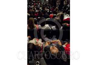MÉXICO, D.F. 29ABRIL2012.-Una señora duerme durante el discurso de Beatriz Paredes,candidata del PRI a la jefatura de Gobierno del DF, Paredes inició hoy su campaña en el Auditorio Nacional al acto tamnbien asisytió Enrique Peña Nietop, candidato de ese partido a la Presidencia de la República. FOTO: JUAN PABLO ZAMORA /CUARTOSCURO.COM