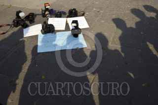 PUEBLA,PUEBLA, 29ABRIL2012.- Periodistas poblanos se manifestaron en el zócalo de la ciudad para mostrar su indignación y exigir justicia por la muerte de la periodista veracruzana Regina Martínez Pérez, quien fuera hallada sin vida en el interior de su domicilio el día de ayer. FOTO: HILDA RÍOS /CUARTOSCURO.COM