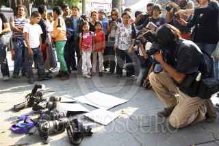 PUEBLA,PUEBLA, 29ABRIL2012.- Periodistas poblanos se manifestaron en el zócalo de la ciudad para mostrar su indignación y exigir justicia por la muerte de la periodista veracruzana Regina Martínez Pérez, quien fuera hallada sin vida en el interior de su domicilio el día de ayer. FOTO: HILDA RÍOS /CUARTOSCURO.COM