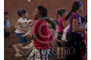 VILLAHERMOSA, TABASCO, 29ABRIL2012.- Niños y niñas de distintas edades fueron festejados en grande. Entre las actividades acontecidas en el lienzo charro Carlos A Madrazo participaron los infantes en competencias de becerras y cochinitos; animales que fueron donados al que los agarrara. FOTOS: MARCO POLO GUZMÁN HERNÁNDEZ/CUARTOSCURO.COM