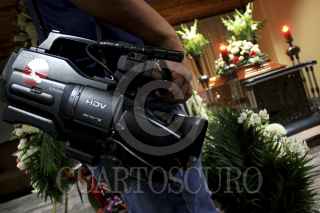 XALAPA, VERACRUZ, 30ABRIL2012.- Comunicadores de diversos puntos de la República mexicana se congregaron durante la madrugada para dar el último adiós a la periodista Regina Martínez Pérez, corresponsal de la Revista Proceso, luego de que fue asesinada en su casa el pasado 28 de Abril del 2012 en esta ciudad. FOTO: FELIX MÁRQUEZ /CUARTOSCURO.COM