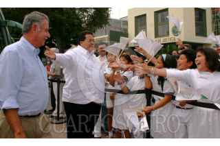 VILLAHERMOSA, TABASCO 21FEBRERO2005.- El presidente Oscar Berger Perdomo, realizo un recorrido por las calles acompañado del gobernador Manuel Andrade. FOTO: Marco Polo Guzmán/CUARTOSCURO.COM