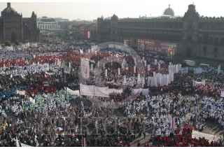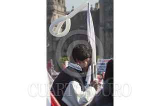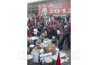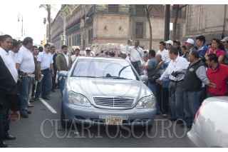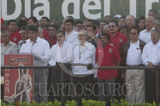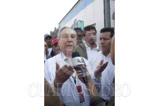 MÉXICO D.F., 01MAYO2012.- Joaquín Gamboa Pascoe, líder del la Confederación de Trabajadores de México, se retiró del Zócalo capitalino al finalizar el acto que conmemora el Día del Proletariado Internacional, tambien llamado día del Trabajo, y que fue consecuencia de un movimiento que logró instaurar derechos laborales como la jornada de 8 horas lograda por los martires de Chicago en la huelga de 1886. FOTO: FRANCISCO RODRÍGUEZ /CUARTOSCURO.COM