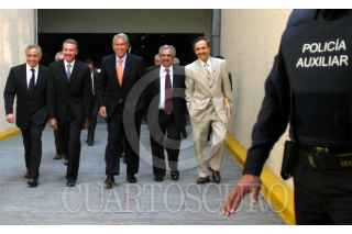 MEXICO, D.F. 21FEBRERO2005.- Los priístas Joel Ortega, Arturo Montiel, y Roberto Madrazo a su salida de la FETSE, luego de sostener una reunión privada. FOTO: Sandra Perdomo/CUARTOSCURO.COM
