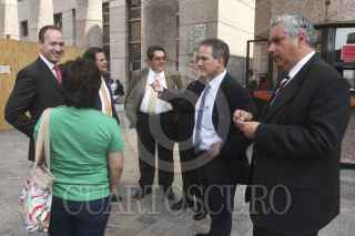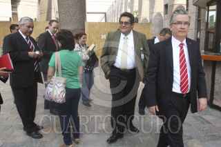 MÉXICO, D.F., 02MAYO2012.- Fernando Perfecto, Secretario general de la Asociación Sindical de Pilotos de Aviación junto a Ricardo del Valle, líder de sobrecargos de mexicana y Miguel Angel Yúdico, líder sindical de trabajadores de tierra de Mexicana a la salida de la reunión que tuvieron en la Sede del Poder Judicial de la Federación donde se definirá la situación de Mexicana. FOTO: ENRIQUE ORDÓÑEZ /CUARTOSCURO.COM