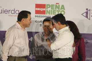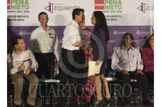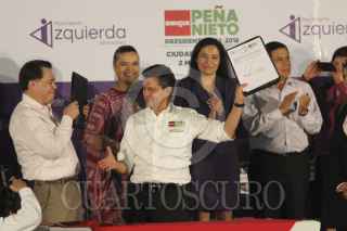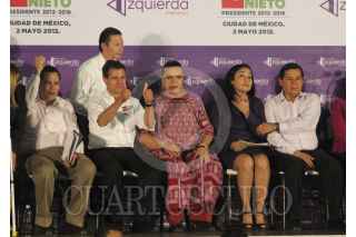 MÉXICO, D.F., 02MAYO2012.- Enrique Peña Nieto, candidato de la coalición “Compromiso por México” se reunión integrantes de la organización "Izquierda Alternativa", donde firmó un acuerdo denominado Alianza por un Proyecto de País. Durante el acto estuvo acompañado por Beatriz paredes, candidata a jefa de gobierno, y por los dirigentes de Izquierda Alternativa, Rene Arce, Víctor Hugo Cirigo y Ruth Zavaleta. FOTO: SAÚL LÓPEZ/CUARTOSCURO.COM