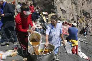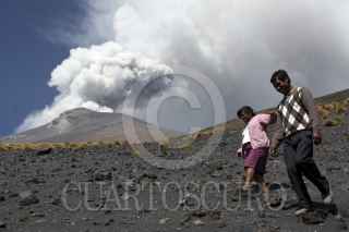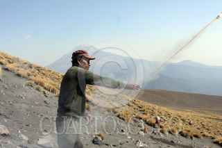 SANTIAGO XALITZINTLA, PUEBLA, 02MAYO2012.- Habitantes del pueblo de Santiago Xalitzintla subieron al "ombligo" de Don Goyo para colocarle una ofrenda que les provea de lluvia para sus cosechas, también le pidieron al Popocatépetl que se este tranquilo esto debido a las fumarolas que ha lanzado en las últimas semanas. FOTO: HILDA RIOS /CUARTOSCURO.COM