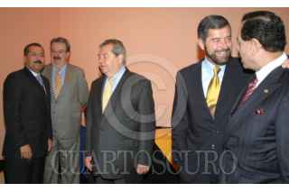MEXICO, D.F. 21FEBRERO2005.- Manlio Fabio Beltrones, presidente de la Cámara de Diputados, Fernando Serrano, director de la Facultad de Derecho UNAM, Porfirio Muñoz Ledo, ex embajador, Juan Ramòn de la Fuente, rector de la UNAM, y Juan Francisco Ealy Ortiz, director del Universal, antes de dar inicio al Coloquio Internacional " Gobierno de Gabinete". FOTO: Sandra Perdomo/CUARTOSCURO.COM