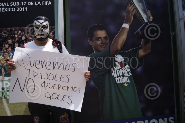 MÉXICO, D.F., 02MAYO2012.- Integrantes del Frente Social por la Igualdad, así como también ciudadanos de la sociedad civil, se manifestaron en las instalaciones de la Federación Mexicana de Futbol, para protestar en contra de Ricardo Salinas Pliego, dueño del equipo de futbol Morelia y propietario de la televisora Azteca, esto debido a la reciente polémica que a surgido en torno a su decisión de transmitir el partido de Morelia, y no el debate electoral. FOTO: PEDRO ANZA /CUARTOSCURTO.COM