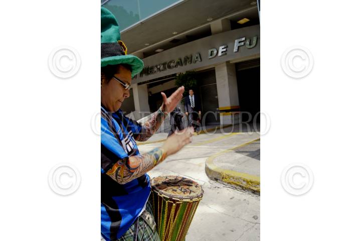 MÉXICO, D.F., 02MAYO2012.- Integrantes del Frente Social por la Igualdad, así como también ciudadanos de la sociedad civil, se manifestaron en las instalaciones de la Federación Mexicana de Futbol, para protestar en contra de Ricardo Salinas Pliego, dueño del equipo de futbol Morelia y propietario de la televisora Azteca, esto debido a la reciente polémica que a surgido en torno a su decisión de transmitir el partido de Morelia, y no el debate electoral. FOTO: PEDRO ANZA /CUARTOSCURTO.COM