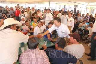 LEÓN GUANAJUATO, 03MAYO2012.- Periodistas intentan entre empujones entrevistar a Enrique Peña Nieto, candidato del PRI y PVEM, hoy dia de la libertad de expresión. FOTO: SAÚL LÓPEZ /CUARTOSCURO.COM
