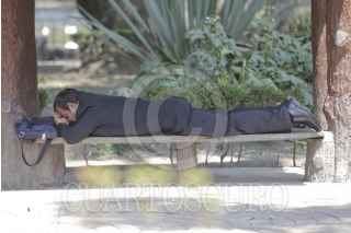 MÉXICO, D.F., 03MAYO2012.- Un oficinista se refugia del calor en una banca del Parque México. FOTO: JUAN PABLO ZAMORA /CUARTOSCURO.COM