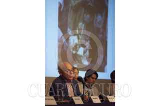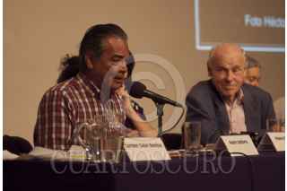 MÉXICO, D.F., 03MAYO2012.- Carmen Galán Benitez, Pedro Valtierra, Rebeca Monroy, Arjen Van Der Sluis, Alicia Ahumada, Ramón Jiménez-Cuen y Pablo Ortiz Monasterio durante la mesa redonda "La memoria de una lente. Miradas sobre Mariana Yampolsky"; en conmemoración del décimo aniversario luctuoso de la fotógrafa. FOTO: ADOLFO VLADIMIR/CUARTOSCURO.COM