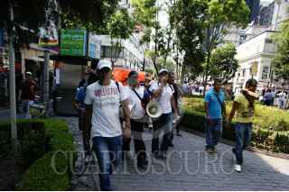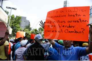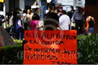 MÉXICO, D.F., 03MAYO2012.- Vendedores ambulantes de la Zona Rosa realizaron un mitin sobre la calle Genova para exigir un espacio de trabajo a la delegación, después de que las autoridades los retiraran del paso peatonal. FOTO: NIMROD CRUCES /CUARTOSCURO.COM