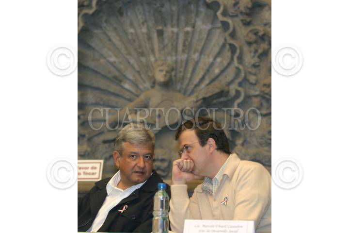 MEXICO, D.F. 27FEBRERO2005.- Andrés Manuel López Obrador, jefe de gobierno de la ciudad de México, durante su intervención en la ceremonia donde entregaron apoyos para mantenimiento de unidades habitacionales. FOTO: Nelly Salas/CUATOSCURO.COM