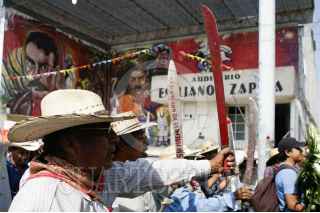 ATENCO, ESTADO DE MÉXICO, 04MAYO2012.- Pobladores de San Salvador Atenco en el Estado de México, recordaron al joven Alexis Holin a seis años de haber sido asesinado durante la repreción al Frente de Pueblos en Defensa de la Tierra por parte de la PFP. El dirigente Ignacio del Valle encabezo una marcha por el pueblo, un mitin sobre la carreta Texcoco-Lecheria y una ofrenda en el lugar donde callo herido el atenquense. FOTO:NIMROD CRUCES /CUARTOSCURO.COM