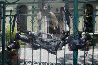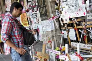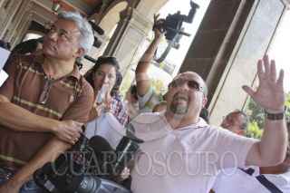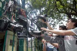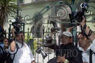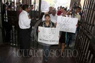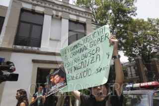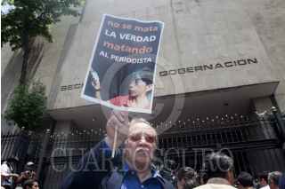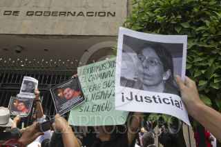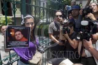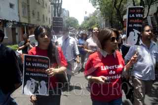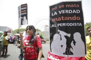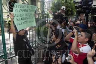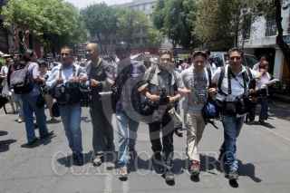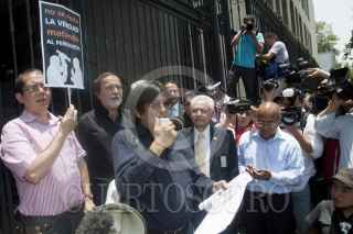 MÉXICO, D.F., 04MAYO2012.- Periodistas de diversos medios de comunicación se manifestraron en la Secretaría de Gobernación, donde entregaron un documento para exigir el esclarecimiento de los recientes asesinatos de reporteros en diversas partes del país, así como un pliego petitorio para garantizar el desarrollo del ejercicio periodístico. FOTO: JUAN PABLO ZAMORA /CUARTOSCURO.COM