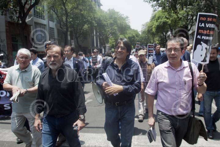 MÉXICO, D.F., 04MAYO2012.- Periodistas de diversos medios de comunicación se manifestraron en la Secretaría de Gobernación, donde entregaron un documento para exigir el esclarecimiento de los recientes asesinatos de reporteros en diversas partes del país, así como un pliego petitorio para garantizar el desarrollo del ejercicio periodístico. FOTO: JUAN PABLO ZAMORA /CUARTOSCURO.COM