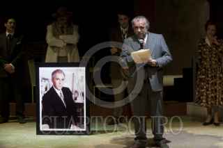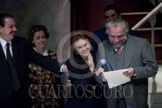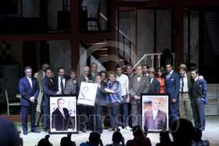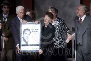 MÉXICO, D.F., 05MAYO2012.- La noche de ayer, la producción de la obra de Teatro "La Muerte de un Viajante" de Arthur Miller, dedicó la función al actor Julio Alemán, recientemente fallecido, a la función acudieron la viuda e hijos del histrión, quienes al final recibieron una placa en este homenaje. FOTO: FRANCISCO RODRÍGUEZ /CUARTOSCURO.COM