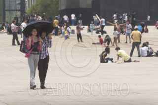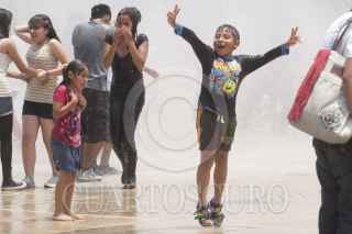 MEXICO,DF., 05MAYO2012.- El Servicio Meteorológico Nacional pronosticó una máxima de 29 Grados Centígrados, con probabilidad de lluvia por la tarde. Un niño se divierte con la fuente de agua que funciona en la explanada del Monumento a la Revolución y que refrescó a cientos de visitantes. FOTO: FRANCISCO RODRÍGUEZ /CUARTOSCURO.COM