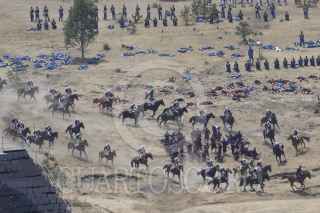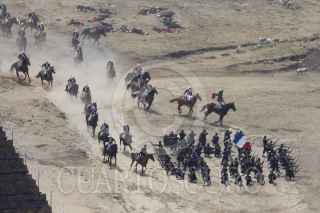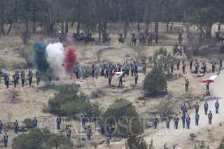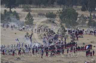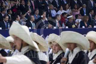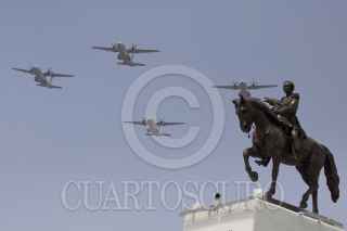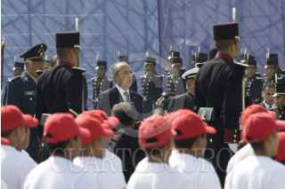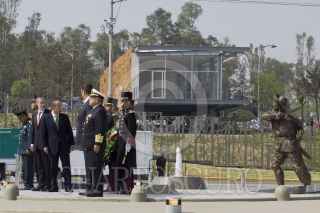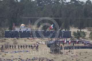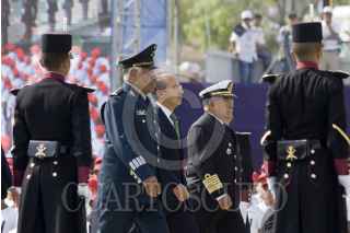 PUEBLA, PUEBLA, 05MAYO2012.- El presidente Felipe Calderon acompañado de Guillermo Galvan, secretario de la Defensa Nacional y Francisco Saynez, secretario de Marina, durante la ofrenda floral por el aniversario 150 de la Batalla de Puebla en donde tropas al mando del general Ignacio Zaragoza vencieron a los ejercitos de Francia. FOTO: RODOLFO ANGULO /CUARTOSCURO.COM