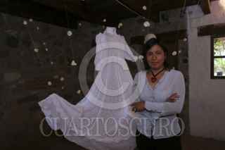 TLAXCALA, TLAXCALA, 05MAYO2012.- Malena Díaz, artista plástica poco antes de inaugurar la exposición "Ausencias", la cual consta de una serie de fotografías de granformato en la que aborda la desolación y la ausencia. La obra se expone en la Galería-Atelier Tepoztla, ubicada en el municipio de Totolac, en Tlaxcala. FOTO: J. GUADALUPE PEREZ /CUARTOSCURO.COM