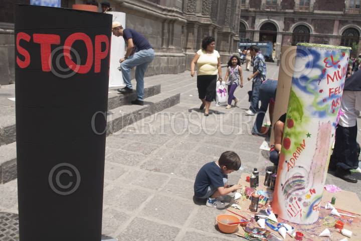 MÉXICO, D.F., 05MAYO2012.- El programa de la Secretaria de Cultura del D.F., "Peatonal" que agrupa a diversos colectivos de artistas plásticos que abordan el arte público desde hace seis años, organizó un taller-exposición "Haz caso a tu Corazón" en el que participan 300 artistas plásticos en la Plaza de Santo Domingo y Plaza la Aguilita en la Colonia Centro. En entrevista, Samuel Mesinas, coordinador del proyecto destaca que la finalidad de la actividad colectiva es acercar a la gente a los artistas plásticos y estos a su vez acercarse a la gente, generando un proceso social alejandolo del refinamiento y el aislamiento del arte formal. Con este ejercicio artistico se busca dar un llamado a la paz y terminar con la violencia. Los talleres se desarrollaran el 5 y 6 de Mayo en dichas plazas y apartir del 9 se expondra en el paseo de los compositores en Garibaldi y la calle de Regina. La obra busca llegar a estado como Veracruz y Morelos. FOTO: FRANCISCO RODRÍGUEZ /CUARTOSCURO.COM