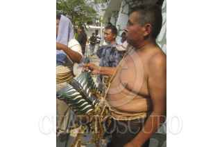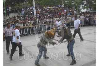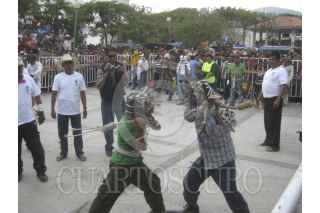 ZITLALA, GUERRERO, 05MAYO2012.- Como cada 5 de mayo, habitantes de este municipio, enclavado en la region de la montaña baja del estado, realizaron su tradicional petición de lluvias, donde hombres vestidos de tigres y con una riata amarrada al cuerpo se enfrascan en una pelea en la plaza central de la poblacion. Si la sangre corre, habra buen temporal y muchas veces los tigres que pelean en esta milenaria tradición son familiares o amigos pero ese vínculo nunca se rompera tras la pelea. Cabe mencionar que antes de iniciar con este ancestral ritual, los participantes son recibidos por los mayordomos en sus casas, donde les dan de comer y les reparten mezcal. Segun las creencias es para que aguanten el dolor de los golpes, haciendo posteriormente un recorrido por las principales calles de la poblacion hasta llegar a la plaza central, donde comienza el ritual. FOTO: OSVAR ALVARADO /CUARTOSCURO.COM